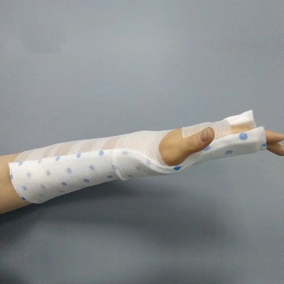 Наложите лонгету на поврежденный сегмент ОДА стороной без рисунка на кожу пациента. Моделируйте лонгету непосредственно на поврежденной конечности.