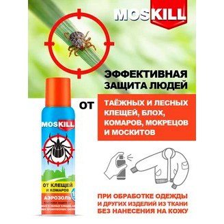Средство акарицидно-репеллентное «Аэрозоль от клещей и комаров». Предназначен для защиты людей от таежных и лесных клещей, блох (переносчиков возбудителей опасных заболеваний человека), а также от летающих кровососущих насекомых (комаров, мокрецов, москитов) при обработке одежды и других изделий из ткани. Способ применения: перед применением упаковку встряхнуть. Одежду и другие изделия из ткани обрабатывать на открытом воздухе. Располагать изделия и направлять струю средства по направлению ветра. Средство распылять на изделия с расстояния 20 – 25 см от них, держа упаковку в вытянутой руке. Для защиты от летающих кровососущих насекомых одежду и другие изделия из ткани обрабатывать до легкого увлажнения. Для защиты от клещей и блох обрабатывать весь комплект одежды, особенно тщательно –вокруг щиколоток, голеней, коленей, бедер, плечевого пояса и мест возможного проникновения клещей и блох к телу. Общее время обработки не более 2 минут. Одежду просушить и надевать на нижнее белье. Повторную обработку одежды проводить через 10– 15 суток или после стирки. Время защитного действия от клещей и блох до 15 суток, отлетающих кровососущих насекомых – до 5 суток. Соблюдайте правила поведения при пребывании на опасной территории: правильно одевайтесь, осматривайте себя для обнаружения клещей, не садитесь и не ложитесь на траву. Нарушение правил поведения и способа применения средства может привести к присасыванию клещей. Будьте внимательны! Меры предосторожности: использовать только по назначению согласно способу применения! ТОКСИЧНО! ОГНЕОПАСНО! Не распылять вблизи открытого огня и раскаленных предметов! Не курить! Предохранять от воздействия прямых солнечных лучей и нагревания выше плюс 50 ºС! Баллон находится под давлением! Не вскрывать и не сжигать баллон даже после использования! Не разбирать и не давать детям! Одному человеку использовать для обработки баллоны общим объемом не более 300 мл в сутки. Лицам с заболеваниями кожи и повышенной чувствительностью к химическим веществам применять средство с осторожностью. Одежду для детей, беременных и кормящих женщин обрабатывают другие лица. Не обрабатывать одежду на человеке и не надевать ее до полного высыхания. Не допускать попадания средства в органы дыхания, рот, глаза и на кожу. В случае попадания в глаза и на кожу – промыть их водой, при попадании в рот –прополоскать, в органы дыхания – выйти на свежий воздух. При необходимости обратиться к врачу, по возможности показать маркировку средства. После работы со средством тщательно вымыть руки с мылом. Избегать контакта средства с синтетическими тканями, пластмассовыми изделиями, окрашенными и лакированными поверхностями. Хранить средство при температуре от минус 25 ºС до +30 ºС, отдельно от лекарственных средств и пищевых продуктов, в местах, недоступных для детей и домашних животных. Обработанную одежду хранить в полиэтиленовом пакете. После использования или по окончании срока годности продукцию и упаковку утилизировать как бытовой отход.