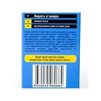 Комплект от комаров ОФФЛАЙН Комарофф, серия. Быстро Самая быстрая защита от комаров доказано миллионами покупателей всего 10 минут и насекомые уничтожены.Одно действие Мгновенное уничтожение достаточно воткнуть фумигатор с жидкостью в розетку.Спокойный сон защита до 45 ночей.Уникальный двухкомпонентный состав.Эффективность подтверждена Ростестом и Роспотребнадзором РФ.Продукт прошел испытания в районах средней полосы России, Сибири и Дальнего Востока.Универсальный электрофумигатор - работает как с пластинами, так и с жидкостью.Поворотная вилка позволяет устанавливать электрофумигатор в горизонтальные и вертикальные розетки.Благодаря двум резисторам в электро фумигаторе, обеспечивается равномерное и стабильное испарение средства.Комплектация:Универсальный электро фумигатор.Флакон с жидкостью 30 мл.