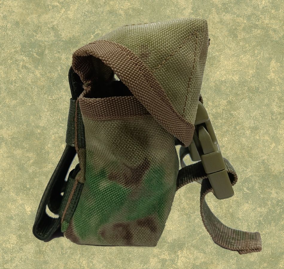 Универсальный подсумок предназначен для хранения двух ручных гранат на разгрузочном поясе. Конструкция подгранатника выполнена таким образом, что длину закрывающего клапана можно изменять, настраивая объем под конкретную модель гранаты. Тактический поясной подсумок гранатный исключает утерю гранат, находящихся в ней. MOLLE - совместимая система крепления, возможность монтажа на пояс, ремень, портупею. Изготовлен из из ткани Кордура - материала, который хорошо удерживает цвет, не линяет. Изделия не истираются со временем. Несмотря на неспособность к выраженному растяжению, ткань гибкая, не ломается, не мнется при сжатии, имеет защитную синтетическую пропитку. Материал достаточно грубый, морозостойкий, водоотталкивающий. Застегивается гранатная сумка только на застежку фастекс, и имеет дренажные отверстия (липучек нет) Он идеально подходит для тех, кто нуждается в быстром доступе к гранатам при участии в армейских спортивных играх: страйкбола, хардбола и других, где необходим бег, будет хорошо держаться и не сползать, благодаря надежному креплению.