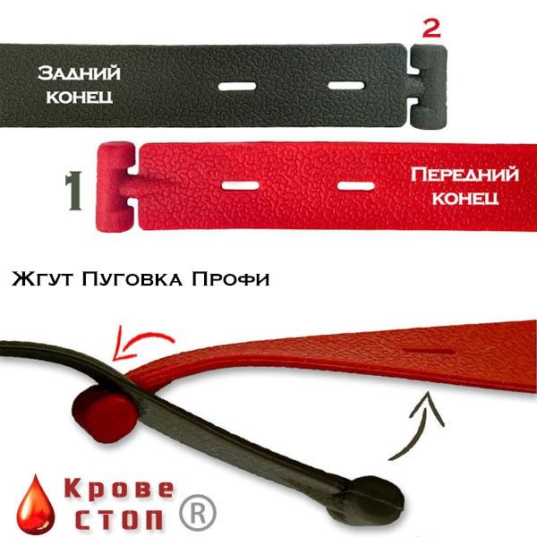 Версия Профи имеет 2 (две) пуговки на обоих концах жгута и 4 (четыре) петельки (по две с каждого). Она больше рассчитана на военную сферу применения, где жгуты применяются в более суровых условиях. Двумя пуговками удобнее работать вслепую на ощупь - и неважно, какой конец ты нащупал, все одно они одинаковые и могут застегиваться друг в дружку. Также, даже в случае порчи или прорыва одного из концов жгута, второй все равно останется целым и пригодным к застёгиванию. Дополнительно, двойная система фиксации лучше подходит для отложенной эвакуации, где пострадавшего часто волочат по буеракам, трясут на концах в бронетехнике и перекладывают с места на место, так что жгут может испытывать излишнее трение.