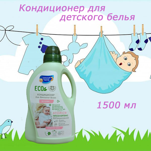 **СОЛНЦЕ И ЛУНА ECO Кондиционер для детского белья БЕЗ ОТДУШКИ флакон 1500 мл** Кондиционер для детского белья «Солнце и Луна Eco» — это надёжное средство, которое обеспечит вашему ребёнку комфорт и безопасность. Он создан с использованием самых передовых технологий и компонентов, чтобы обеспечить максимальный уход за одеждой вашего малыша. Этот кондиционер обладает рядом преимуществ: * **Без отдушки:** кондиционер не содержит ароматизаторов, что делает его идеальным выбором для детей с чувствительной кожей и аллергиков. * **Экологичность:** формула кондиционера разработана с учётом требований экологической безопасности. Она не содержит вредных химических веществ, которые могут нанести вред окружающей среде или здоровью ребёнка. * **Эффективное действие:** благодаря особой формуле, кондиционер обеспечивает мягкость и свежесть детского белья после стирки. Он также помогает сохранить цвет и структуру тканей, продлевая срок службы одежды. Объём флакона составляет 1500 миллилитров, что позволяет использовать кондиционер в течение длительного времени. Это экономичное решение для заботы о детской одежде. Использование кондиционера «Солнце и Луна Eco» сделает процесс стирки более эффективным и безопасным для вашего ребёнка. Он станет незаменимым помощником в уходе за детской одеждой, обеспечивая ей мягкость, свежесть и защиту от загрязнений. **Способ применения:** следуйте инструкциям на упаковке. Добавьте необходимое количество кондиционера в соответствующий отсек стиральной машины перед началом цикла полоскания. Для ручной стирки предварительно растворите необходимое количество средства в воде при последнем полоскании.